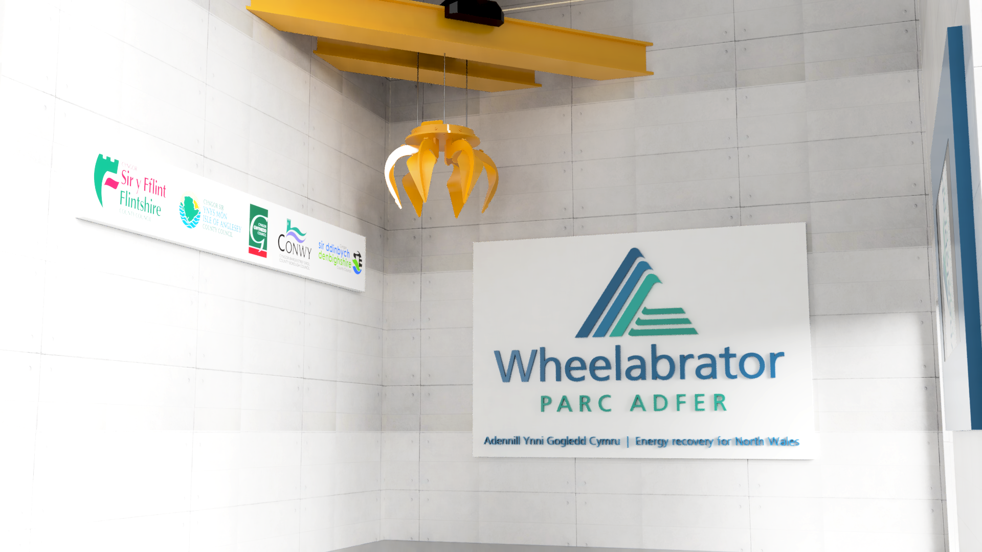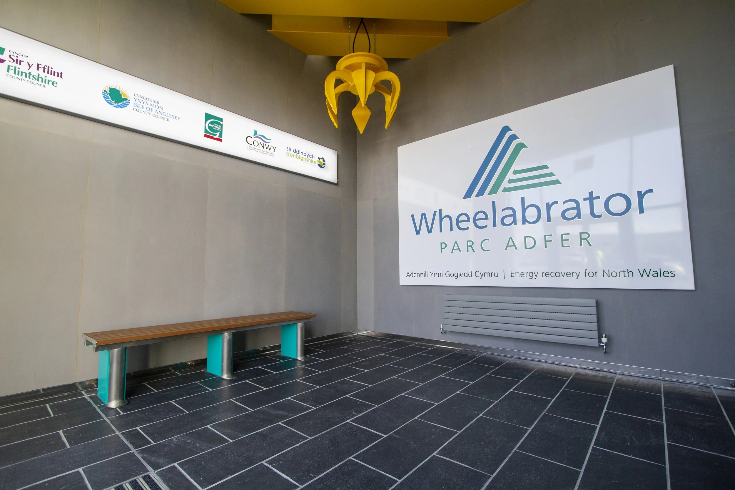 Additionally, a display was installed to play introductory videos for visitors before they entered, alongside a lightbox panel showcasing partner logos—with the Parc Adfer 3D logo prominently featured at the centre.