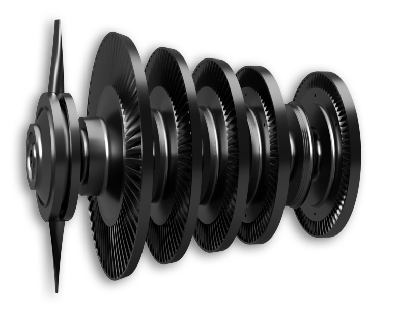 The turbines were FDM 3D printed, with the largest set measuring 480mm in diameter. Printed directly in a metallic grey filament, these models required minimal finishing after being removed from the 3D printer.
