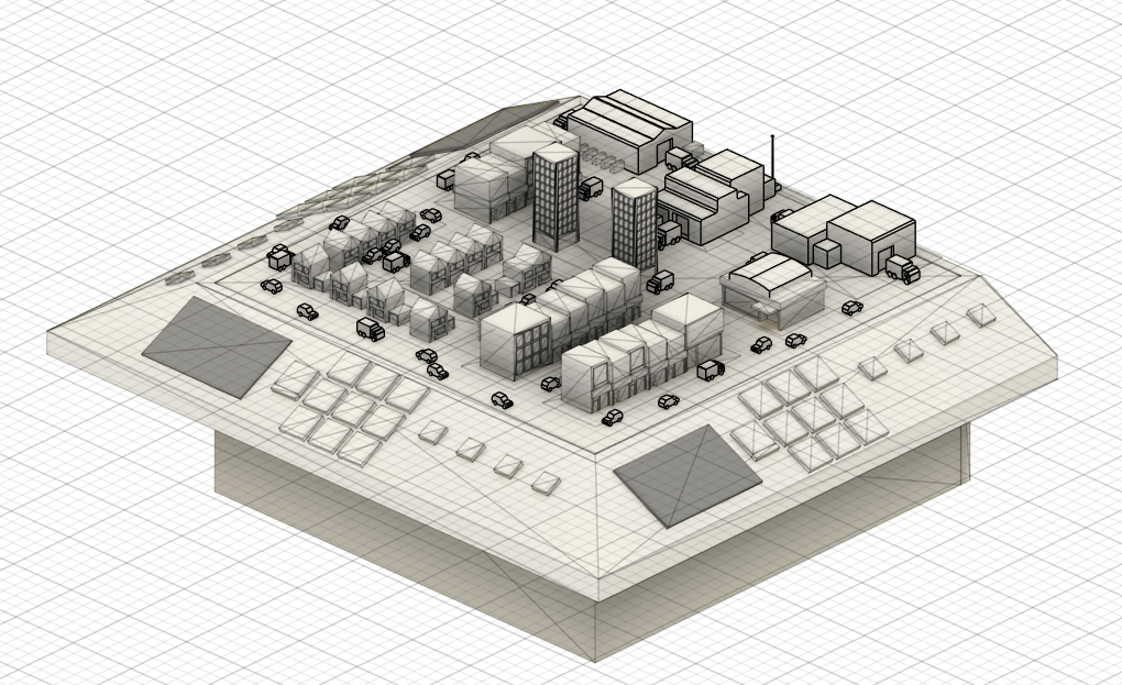 I soon began to alter the original pitch design, adding elevations and refining the village to meet the criteria. This included adding light-up markers, correcting the scale of vehicles, and integrating the Parc Adfer facility into the model. After continued back-and-forth collaboration with the team at Enfinium, we were able to finalise the design and proceed with 3D printing the models.