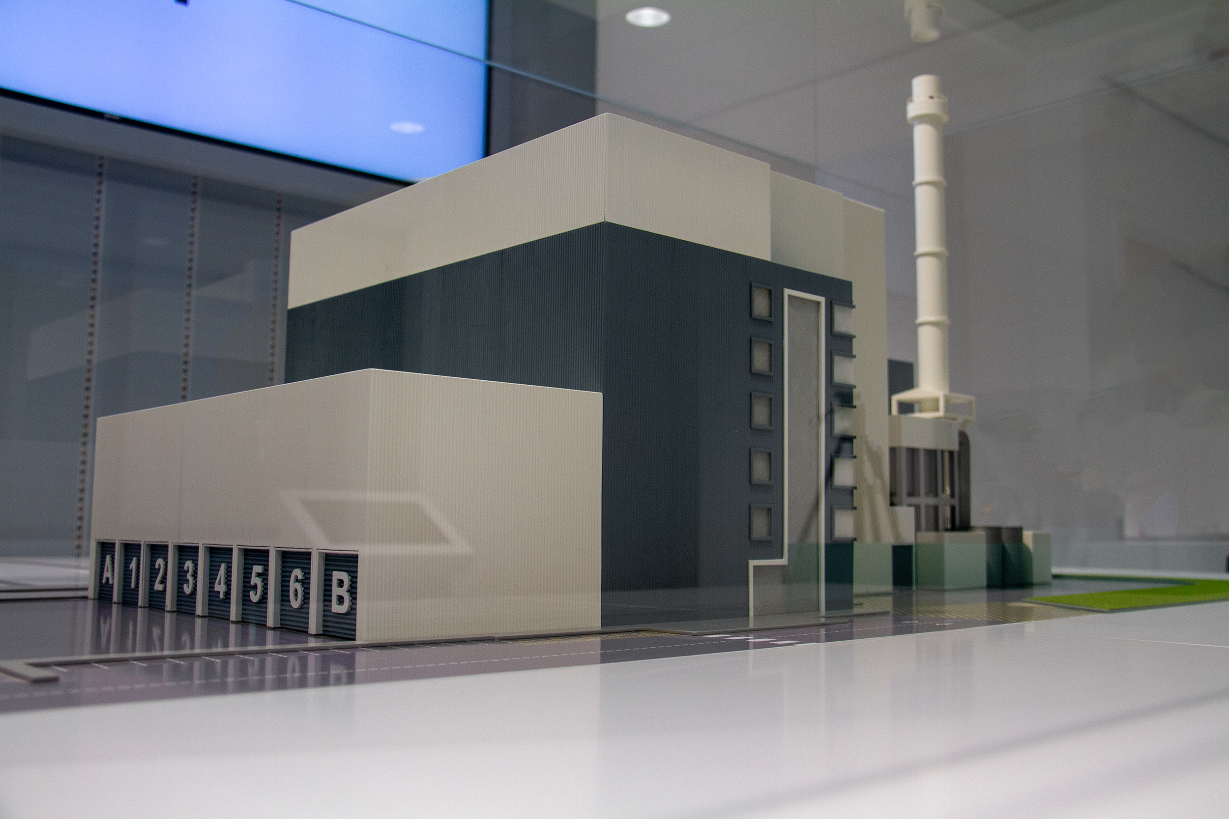 I was also responsible for designing the base graphic, which detailed the site’s road access, car parks, loading bays, etc., as well as the cabinet design. This included an infographic screen controlled by a lever that activated LED strip lights, connecting the facility to the screen and emulating power being generated by the facility to ‘power’ the screen.