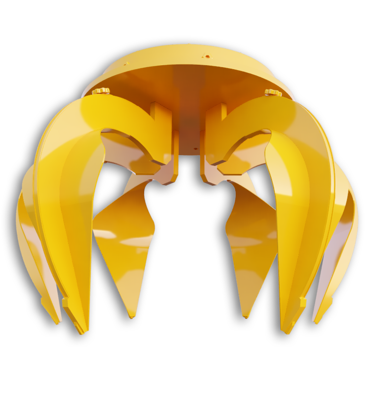 The grabber claw was made from MDF and secured to the ceiling with faux steel braces, similar to those seen inside the plant. It was finished in a semi-gloss hazardous yellow paint. This model is a static representation of the functional machine used in the facility.