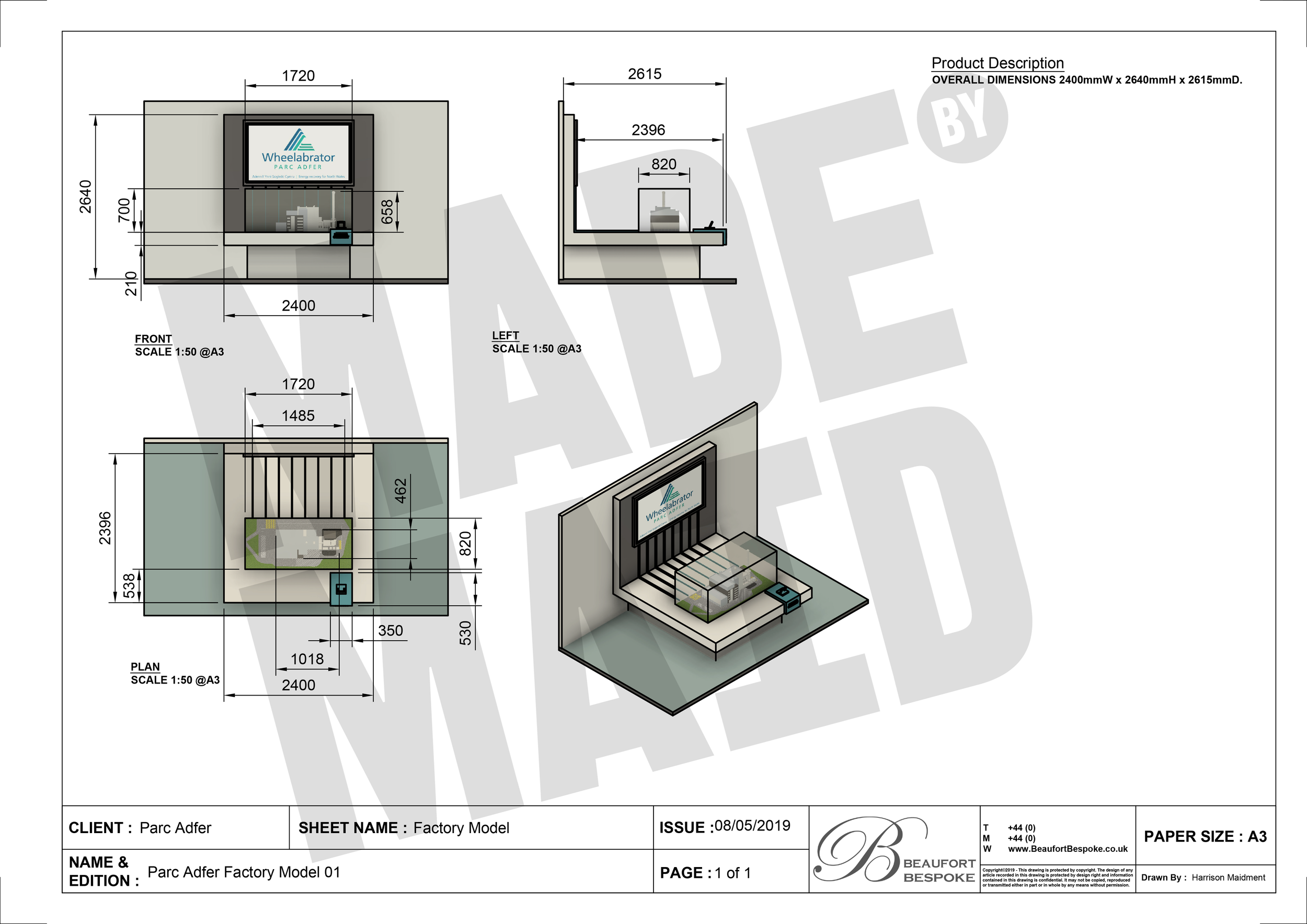 The final instalment of this project was the Parc Adfer facility model, located on the viewing floor. I was responsible for the entire design and manufacture of this model. Working with Enfinium, I was able to obtain some architectural models that I could reference when modelling this simplified adaptation.
